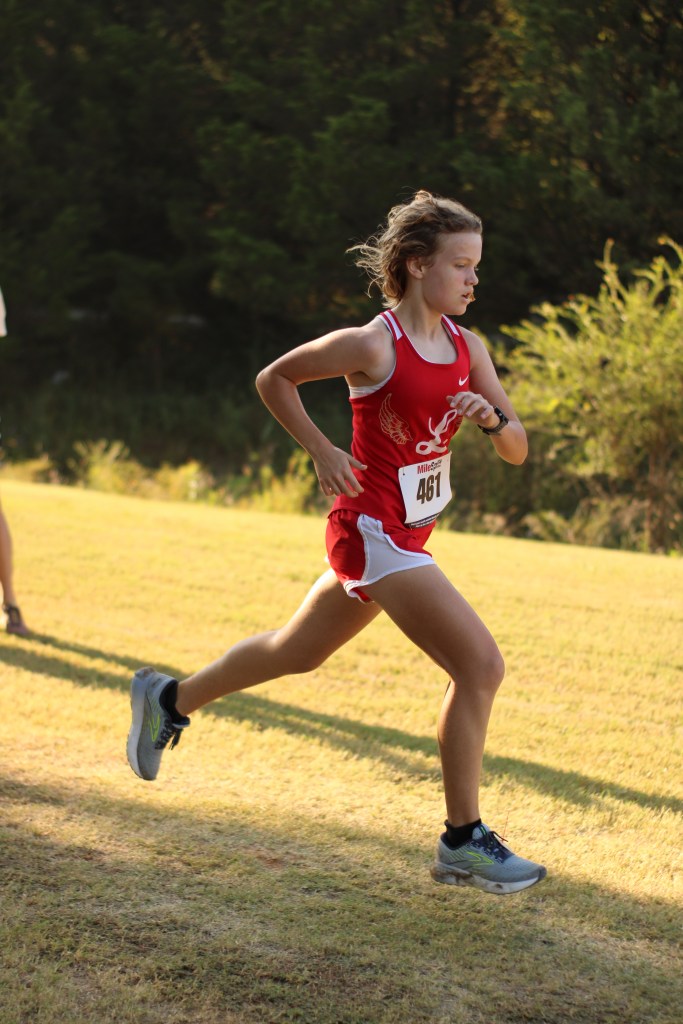 This strength is evident in the team’s fresh wave of young runners, who are steadily building a promising foundation for the years ahead. Among the athletes forging the path are Jordan, who has lead the varsity boys team with sub-twenty times in the past four meets, and eighth grader Willow Noble, who was assigned to the varsity girls team after displaying standout times in practice and previous races; at Tupelo, Noble led the team with a new personal record of 24:23.