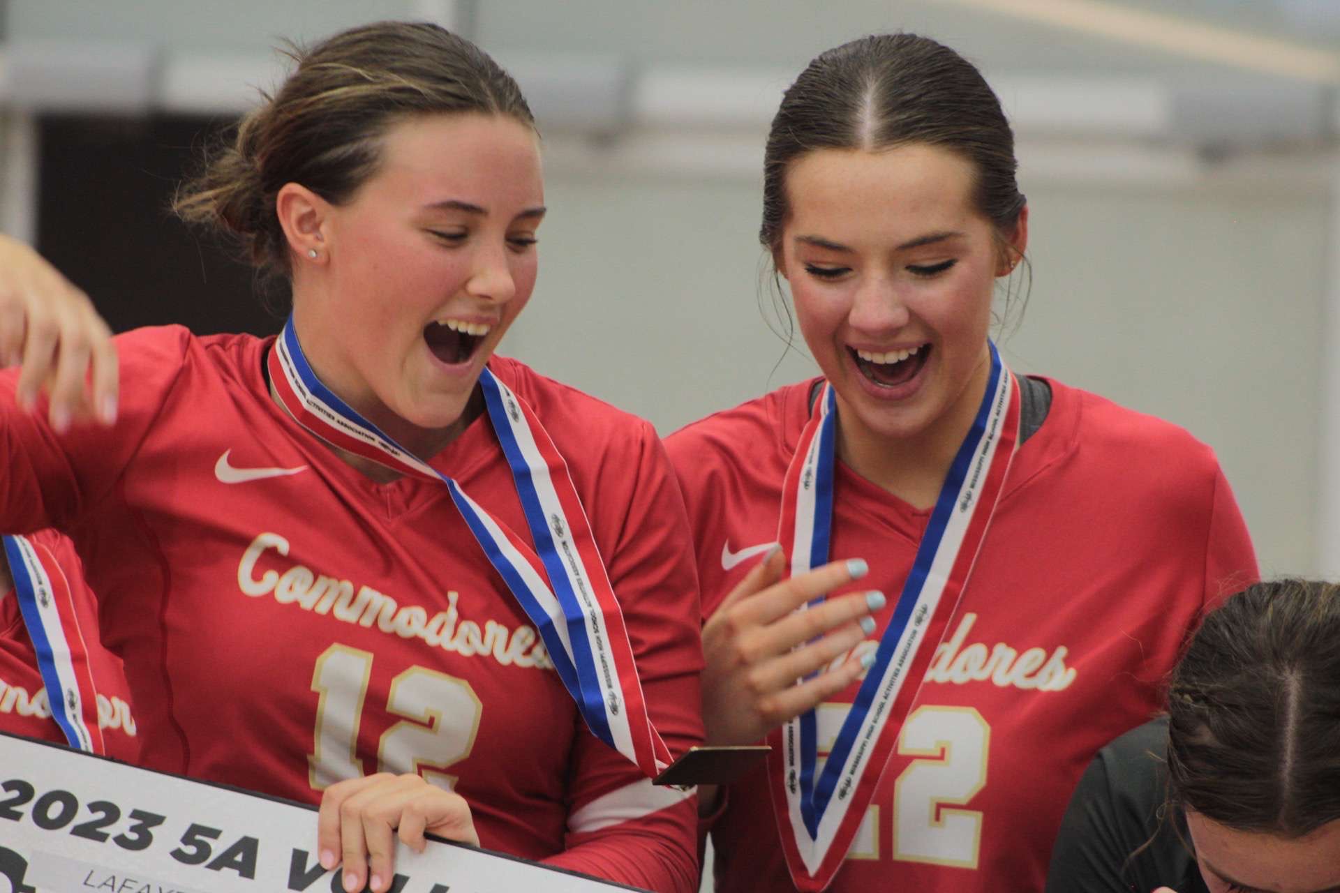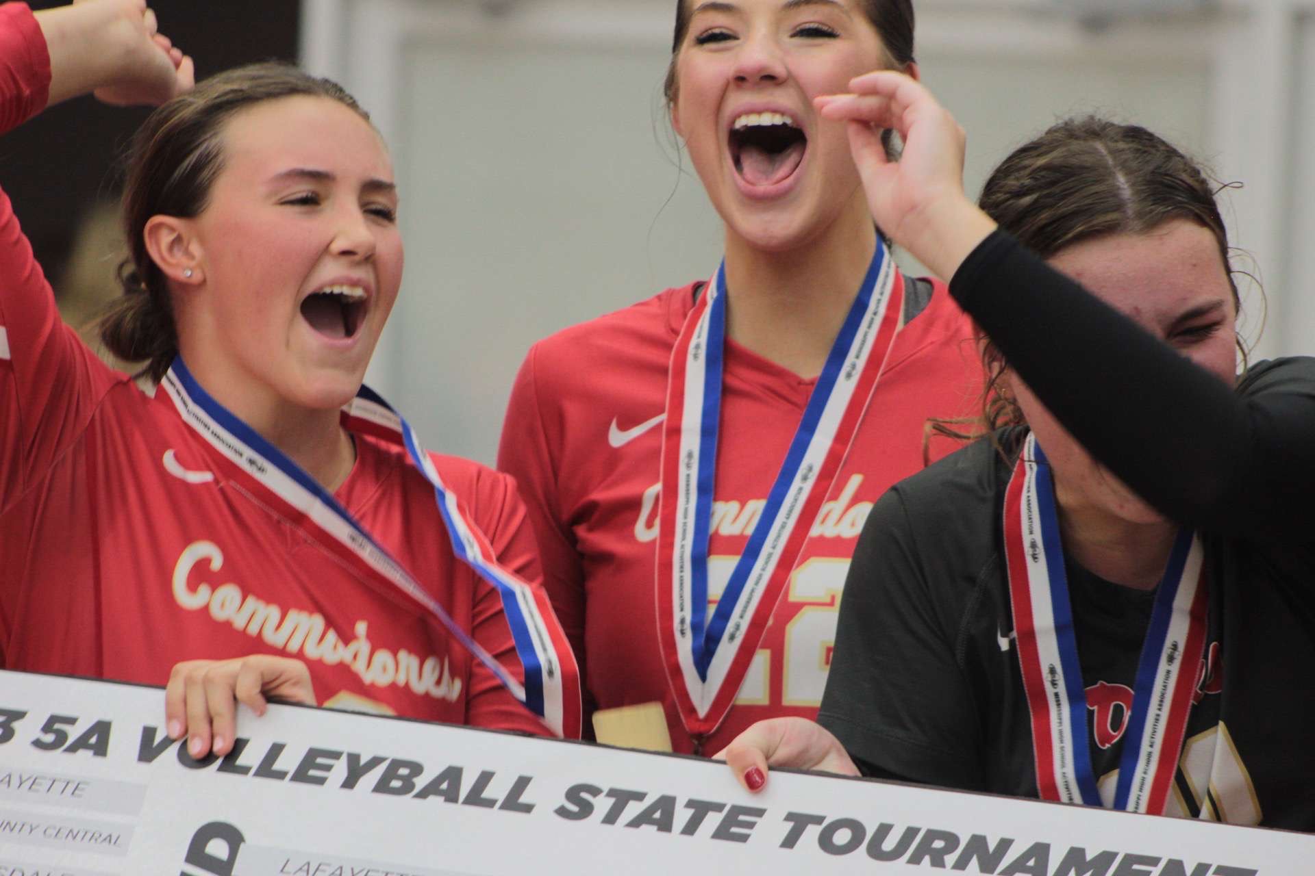 The first set was a Commodore win as they led the whole time. They won the set 25-15. The second set was a nail-biter. The Hornets led the first half of the set, but the Dores fought and came back to win 25-21. The last set was dominated by the Commodores. They won the third set 25-15, sweeping East Central and claiming the state title for the first time in school history. The awards ceremony began after the match, where Harmony Jackson was awarded Most Valuable Player of the game. While accepting the award the student section cheered her on by chanting her name. The team then received the championship trophy and banner.